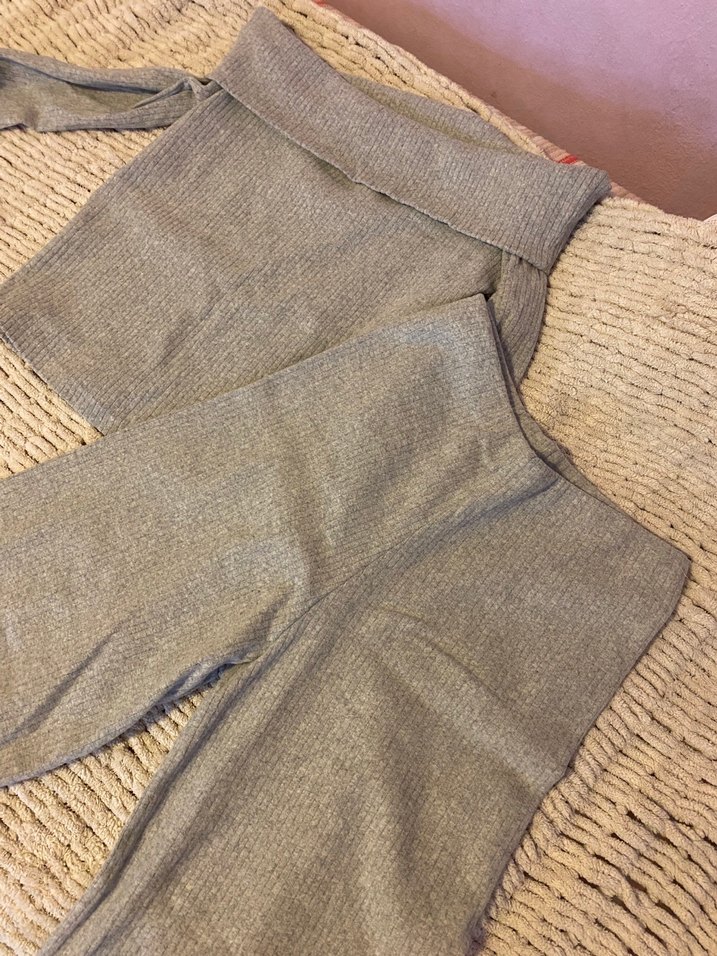 Gri örgü keten kumaştan, normal boy midi uzunluğunda, rahat kesim kadın pantolon. Günlük kullanıma uygun, trend sokak modasına uyum sağlar.