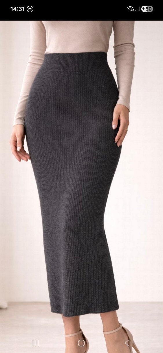 Gri renkte, örgü dokulu, sentetik kumaştan yapılmış, vücuda oturan uzun etek. Sade ve rahat tarzıyla günlük kullanıma uygundur. AVM de VİŞNE mağazasından aldım hiç kullanılmadı