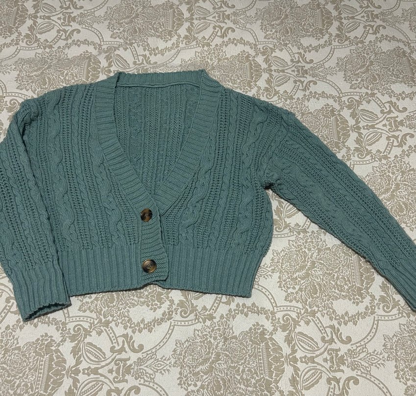 Gri renkli, V yakalı, uzun kollu ve örgü kumaştan yapılmış bol kesim bohem tarzda hırka. Normal midi boyda ve iki düğmeli.