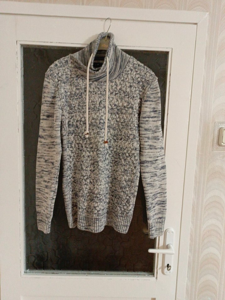 Bu erkek kazak, yüksek yakalı ve uzun kolludur. Örgü kumaştan yapılmış, gri yılan desenli ve bol kesimdir. Günlük sokak stili için uygundur. boy 70 cm iki kol arası 53 cm kol boy 66 cm sıfır yeni aldık küçük geldi erkek kazağı