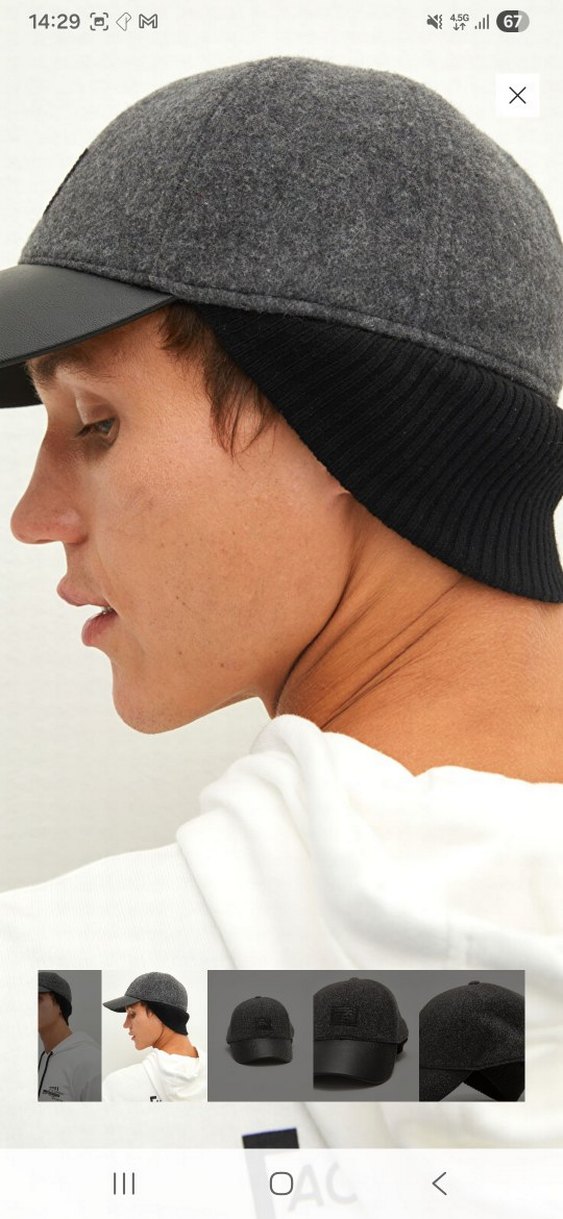 örgü yün malzemeden yapılmış gri ve siyah detaylı şapka. Sokak stiline uygun, rahat ve sıcak tutar.
