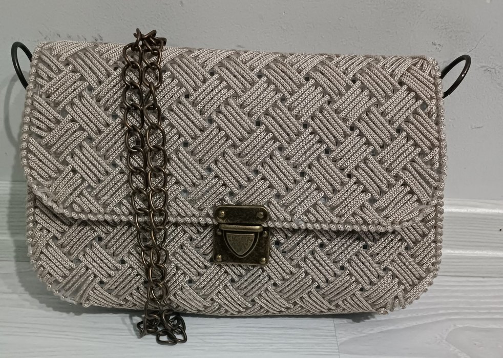 Gri Örgü Zincir Detaylı Kadın Çanta