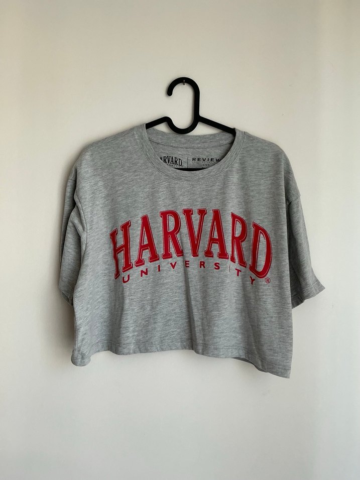 Gri renkte, kısa kollu ve yuvarlak yakalı crop top. Hafif bol kesimi ve Harvard Üniversitesi baskısı vardır. Pamuklu kumaştan üretilmiştir. Orijinal üründür.