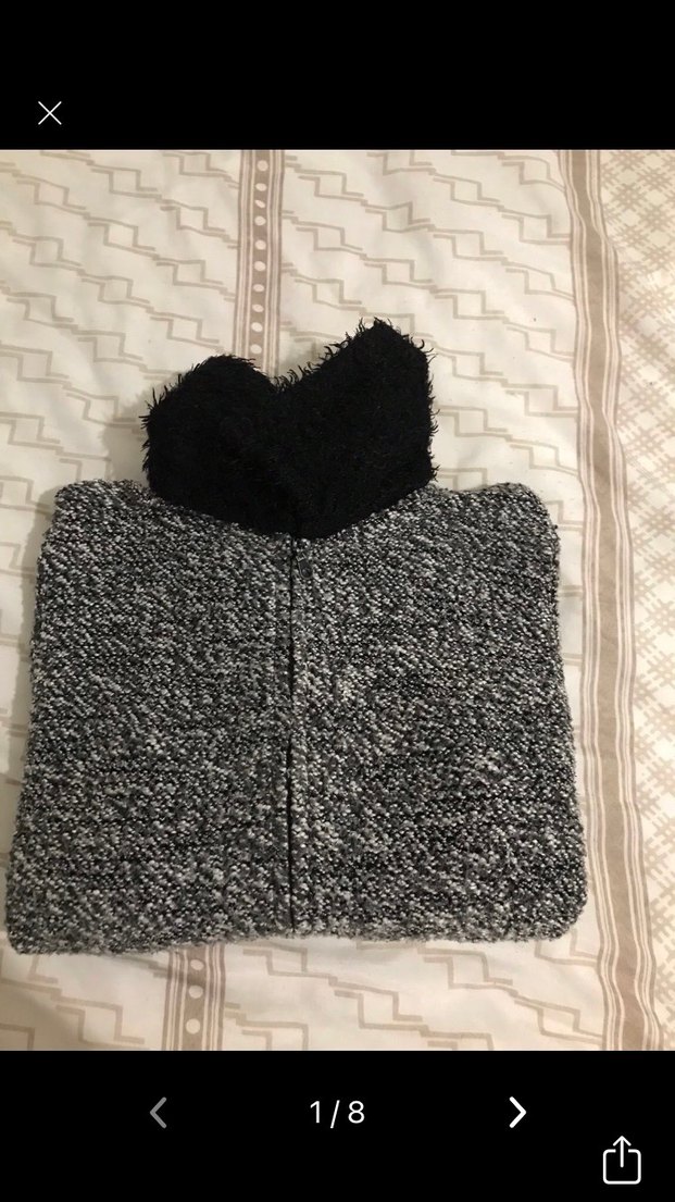 Gri örme kumaştan, boğazlı ve uzun kollu, vücuda oturan kısa kesim kadın kazak. Günlük kullanıma uygun, çağdaş tarzda. Temiz kullanıldı sağlam sorunsuz fermuarlı