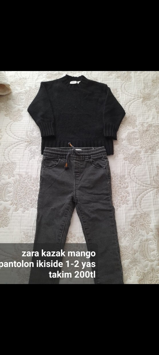 Bol kesim, gri örme dokulu denim pantolon. Zara kazak ve Mango pantolon 1-2 yaş için uygun.