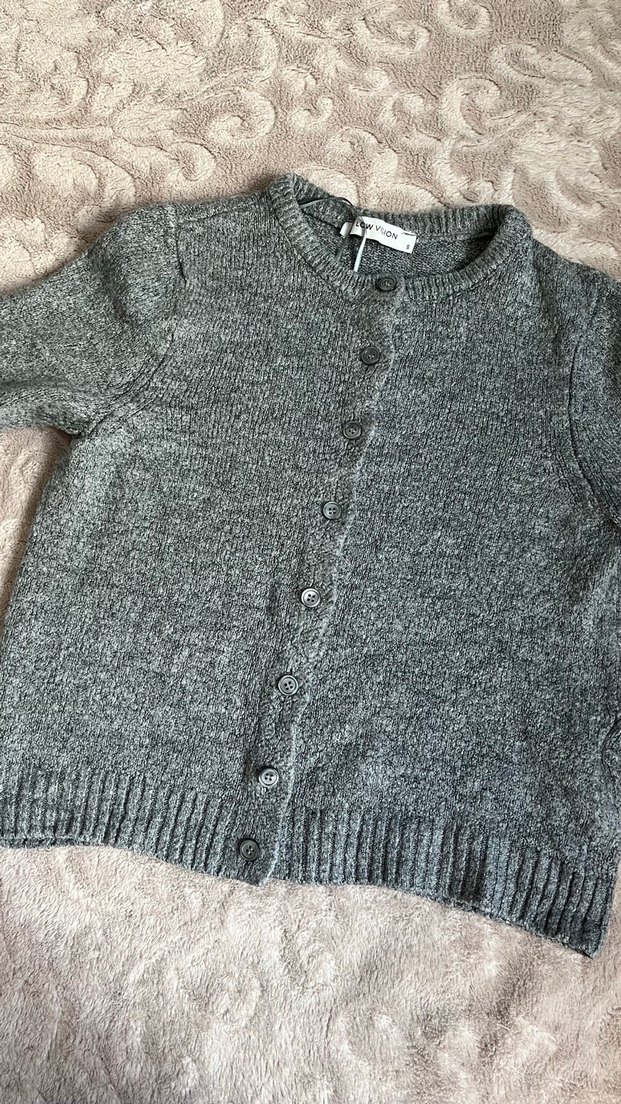 Gri renk, örme kumaştan, yuvarlak yakalı ve uzun kollu kadın hırka. Düğmeli ve rahat kesimlidir, günlük kullanım için uygundur.
