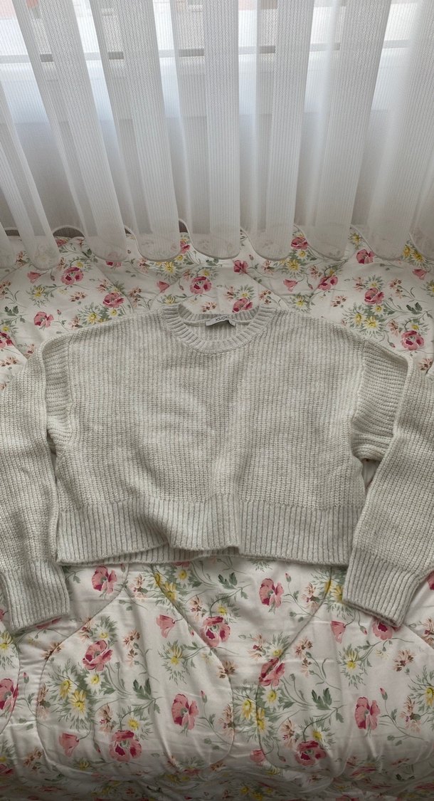 Gri örme kumaştan, uzun kollu ve yuvarlak yakalı, bol kesim kadın triko kazak. Midi boyda ve rahat günlük kullanıma uygun. Şık detayları var