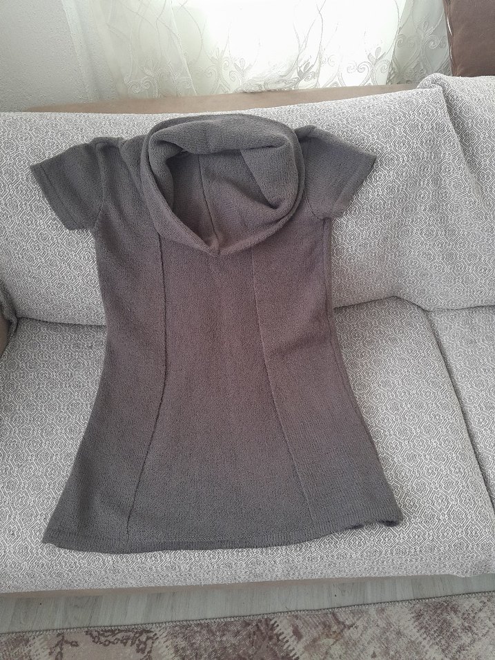 Gri renkli, yumuşak keten kumaştan örme dokulu, kısa kollu ve yüksek yakalı, normal boy midi uzunluğunda, vücuda oturan hamile tunik. Günlük kullanıma uygun, çağdaş ve rahat tarzda. TÜYLENMESİ VAR . BOĞAZLI KUMAŞI KALIN RENGİ GRİ GİBİ SADE FOTOĞRAF ÖYLE ÇIKMIŞ AZ SÖKÜK VAR