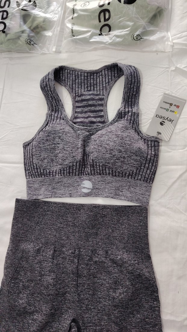 Gri örme yapıda, kısa ve kolsuz, bisiklet yaka sporcu sütyeni. Sentetik kumaştan, spor ve sokak stiline uygun.takım 450 tek 250