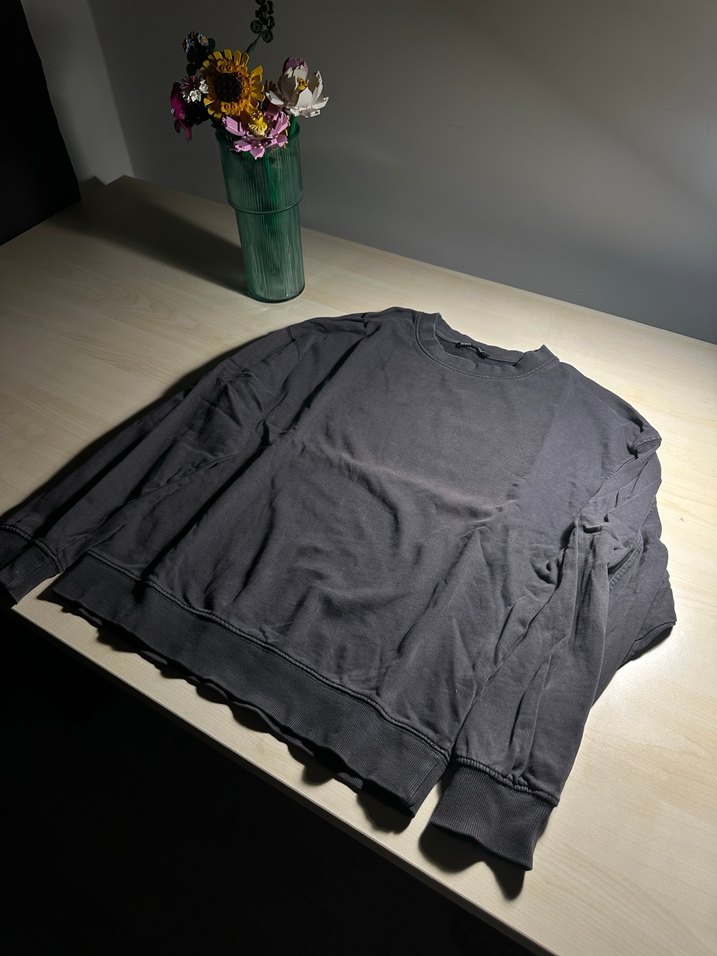 Gri sweatshirt, yuvarlak yaka ve uzun kolludur. Rahat kesimiyle günlük kullanıma uygundur. Sorunsuzdur.
