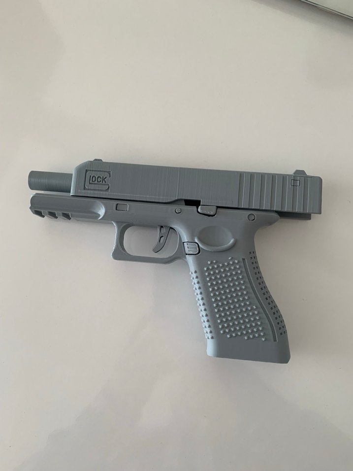 Doku detaylı, gerçekçi görünümlü gri oyuncak tabanca. Sağlam malzemeden üretilmiş, güvenli ve işlevsiz tetik içerir. 3d printer ile çevre dostu pla malzemeden üretilmiştir mermi atma özelliği devre dışı bırakılmıştır birebir ölçüdedir
