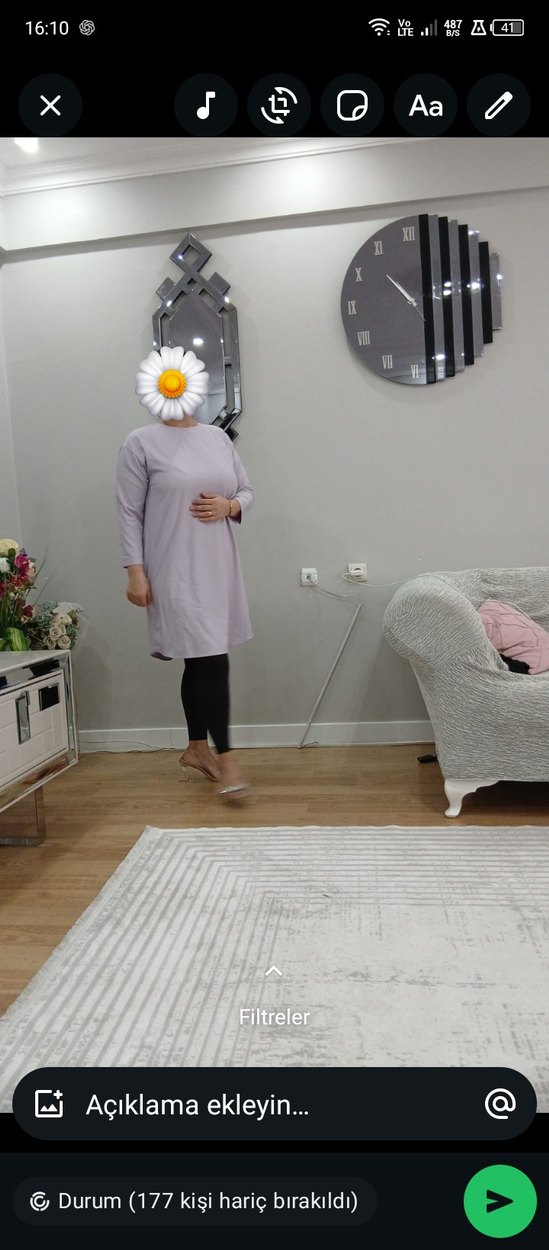 Gri pamuk hamile tunik, yüksek yakalı, uzun kollu ve midi boyda, rahat ve bol kesimiyle minimal bir şıklık sunar.