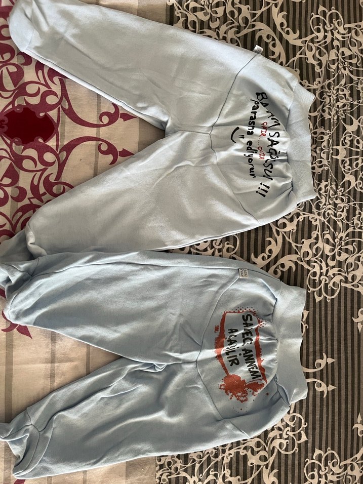 Gri renkli, pamuklu erkek çocuk pantolonları, rahat kesim ve baskılı desenlerle sokak tarzına uygun, düğmeli detaylara sahiptir.