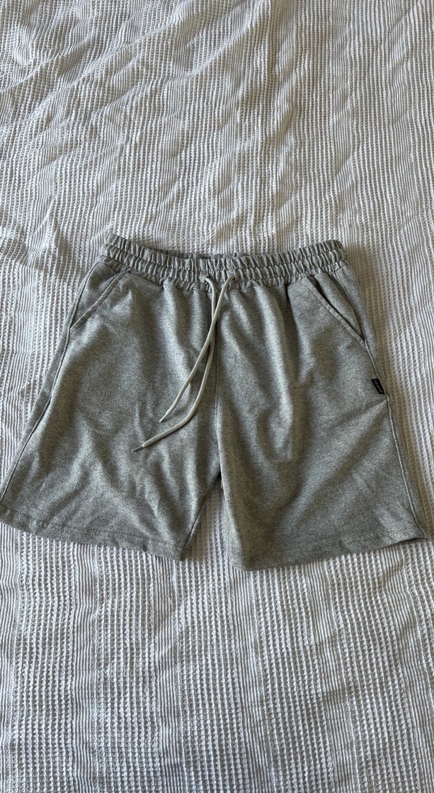 Gri pamuklu kumaştan, elastik bel ve cepli, salaş kesim mini şort. Günlük kullanım için rahat ve sade bir tasarım.
