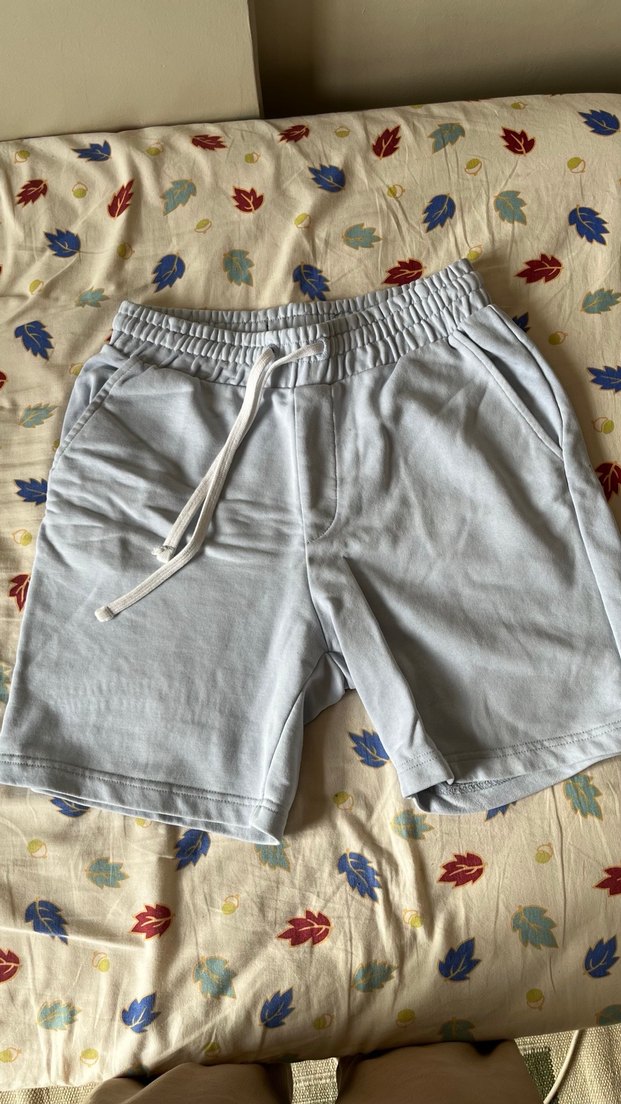 Gri pamuklu erkek şort, elastik bel ve bağcık detaylı. Rahat kesimiyle günlük sokak tarzı için uygun. Basit ve konforlu.
