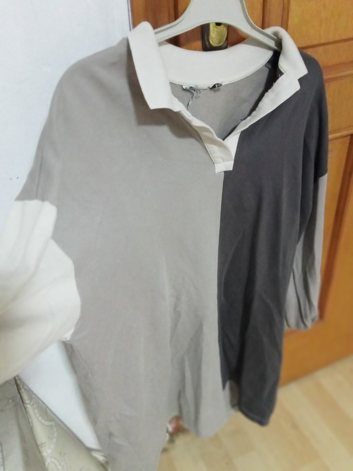 Pamuklu, kısa kollu, düğmeli ve yakalı bu gri hamile gömleği rahat ve salaş kesimdedir. Günlük sokak stiline uygundur.