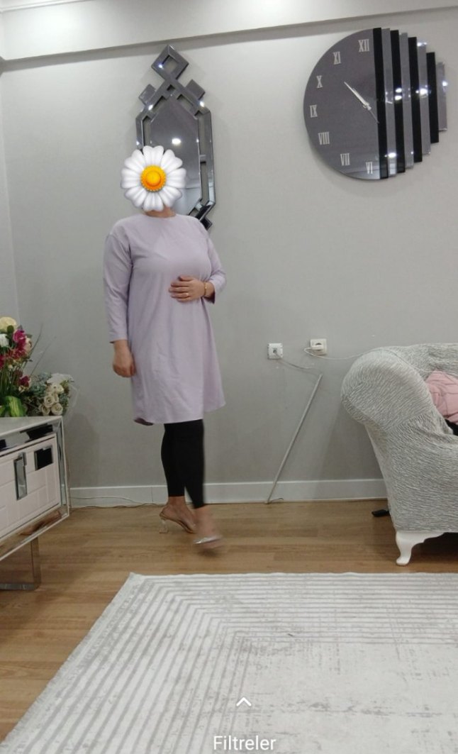 Gri renkte, pamuklu kumaştan üretilmiş, yüksek yakalı ve uzun kollu hamile tunik. Salaş kesimi ve midi boyuyla günlük kullanıma uygundur, minimal ve şık bir tasarıma sahiptir.