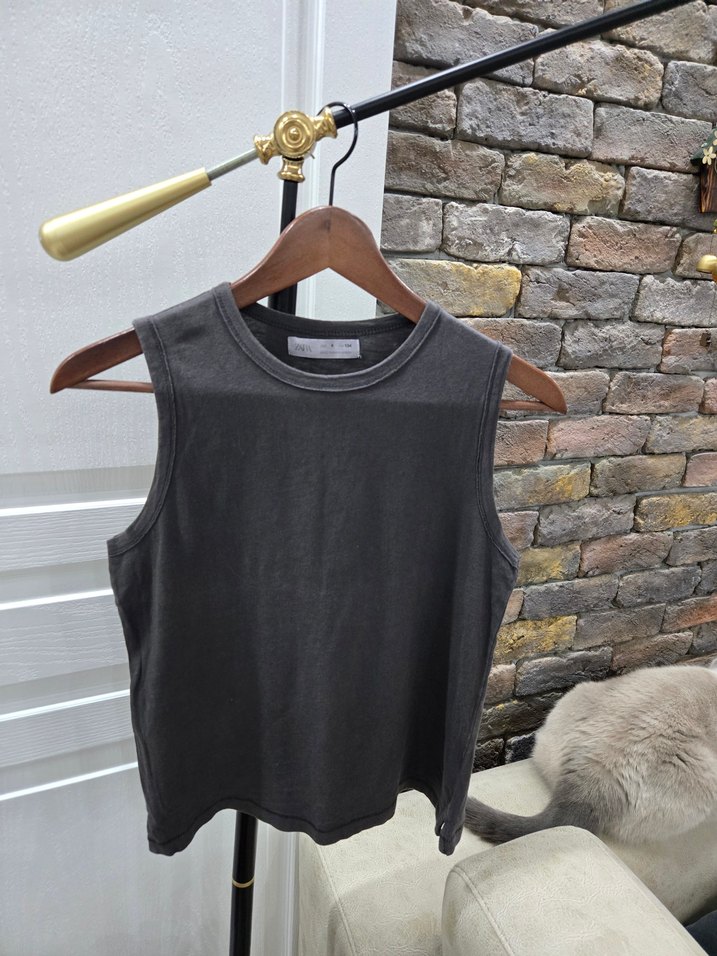 Gri renkte, pamuklu kumaştan üretilmiş, kolsuz ve yüksek yakalı çocuk atlet. Salaş kesimi ve midi boyuyla günlük kullanıma uygun, sade ve şık bir tasarım sunar.renginde solma mevcut ve arka etiket kısmında minik delik mevcut.