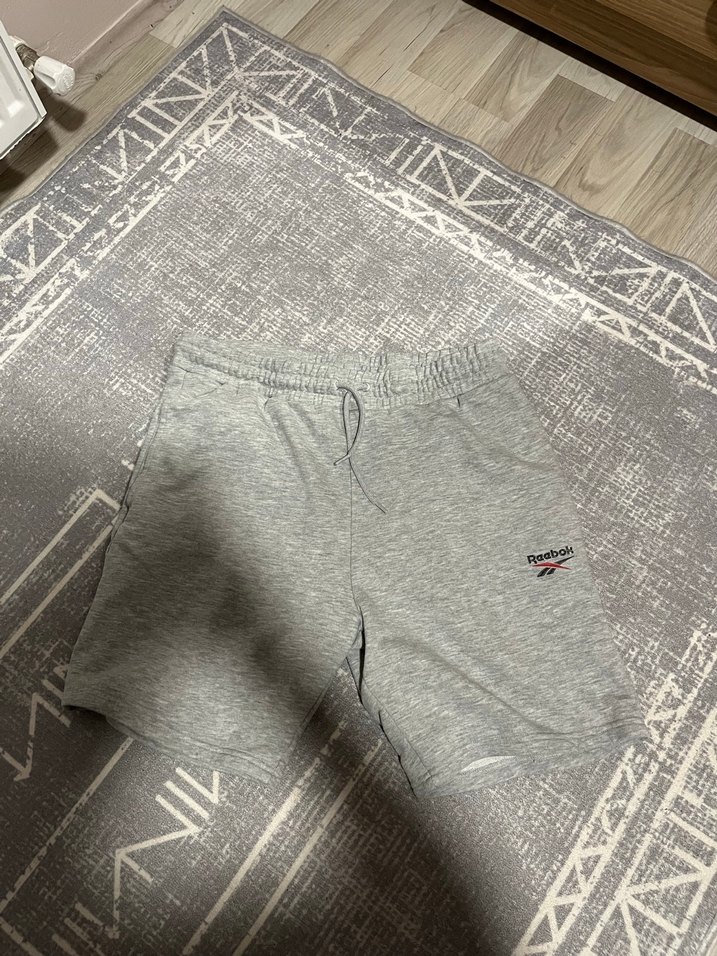 Reebok markalı, gri pamuklu, bol kesim ve kısa boy şort. Elastik bel ve bağcık detayı ile sportif ve rahat bir kullanım sunar.