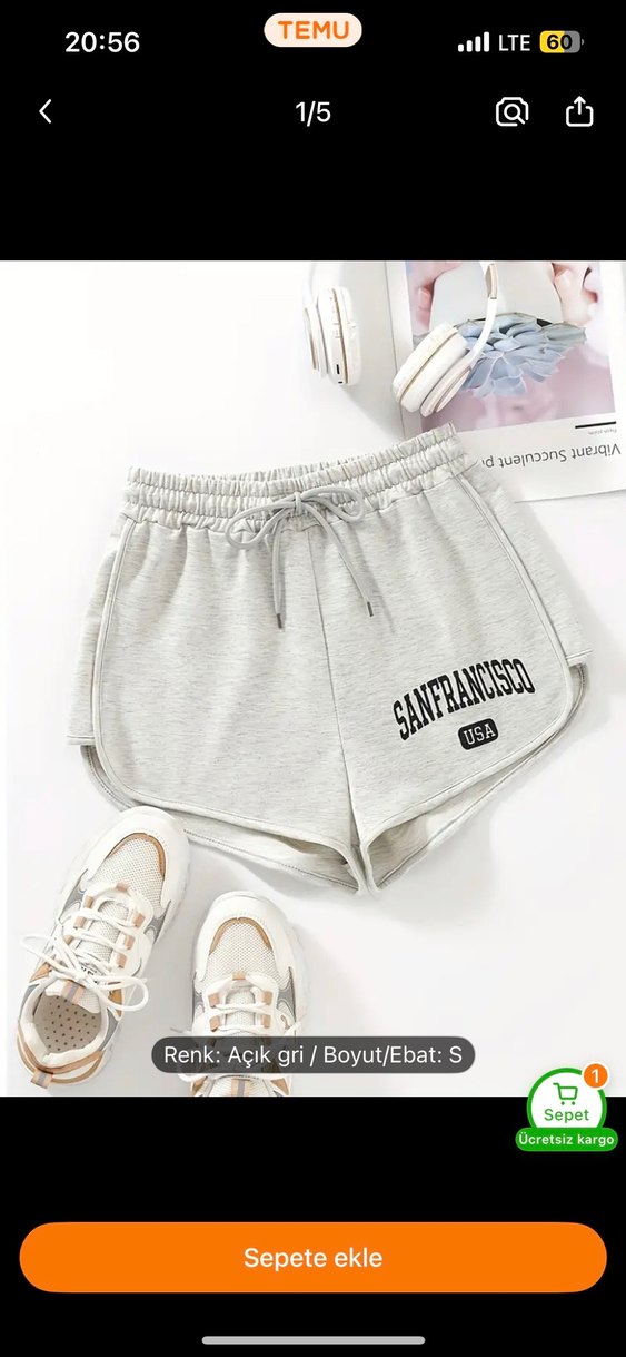 Açık gri pamuklu kumaştan, San Francisco ve USA baskılı, rahat kesim mini şort. Spor ve günlük kullanıma uygundur.