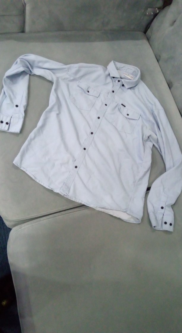 Düğmeli önü ve uzun kolları olan erkek gömleği, yakalı ve bol kesimdir. Gri renkte, yumuşak keten kumaştan üretilmiştir. Desensiz ve günlük rahat stil için uygundur.