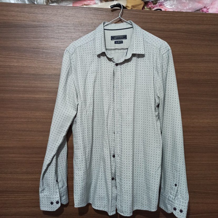 Gri renkte, pamuklu kumaştan üretilmiş, düğmeli ve uzun kollu erkek gömleği. Normal kesim ve notlu yaka detayı ile ofis ve günlük kullanıma uygun.