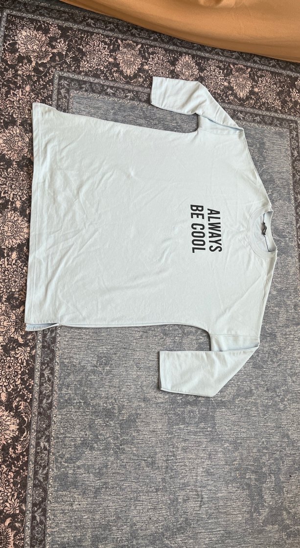 Yumuşak pamuktan, bol kesim uzun kollu Yuvarlak yaka ve üzerinde "ALWAYS BE COOL" baskısı bulunur. Rahat sokak stili ve günlük kullanıma uygun.