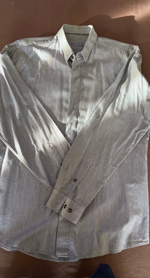 Gri keten erkek gömlek, düğmeli ve uzun kolludur. Regular fit kesimi ve desensiz tasarımıyla günlük rahat kullanıma uygundur. Fabrika mağazasından alınmıştır