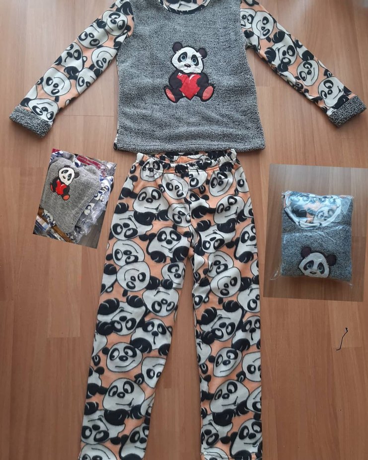 8 Yaş çocuk Gri üstte panda baskılı, pijama takımı