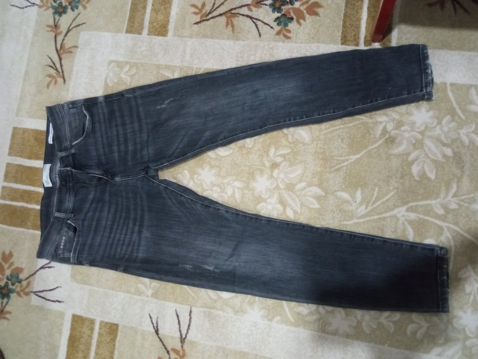 Gri renkte, normal kesim ve midi boyda, yırtmaç detaylı kadın denim pantolon. Günlük kullanıma uygundur.