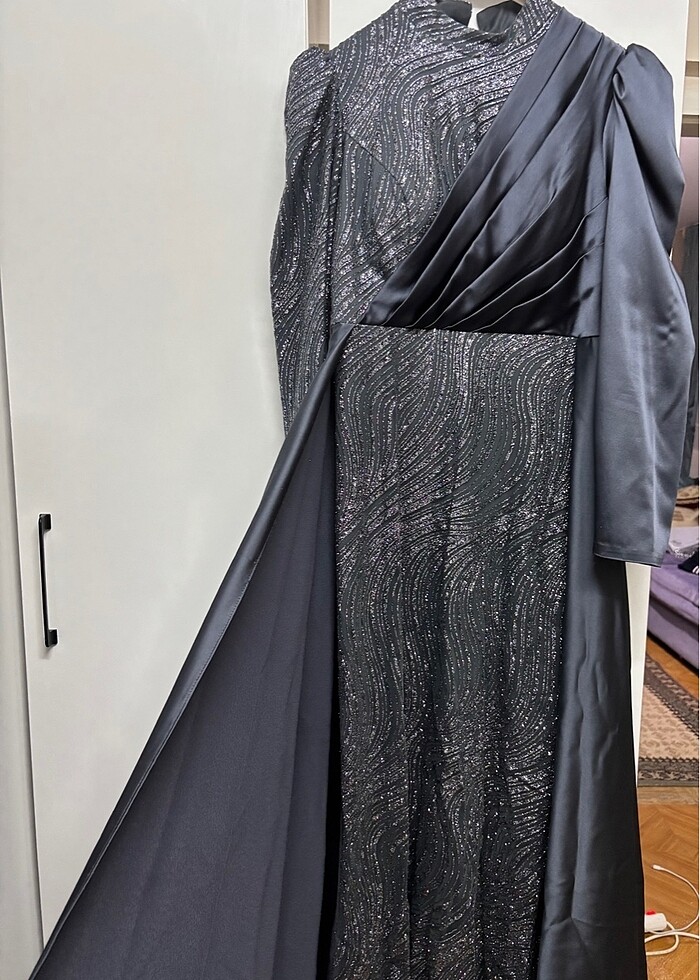 Ürün sadece 1 kez giyildi. Temiz kullanıldı hiçbir deformesi lekesi yoktur. Sıfır gibidir. İçi balık model arkası pelerin gibi modeldir. 44 beden. Fotoğraflarda göründüğü gibidir ve koruma kılıfı ile gönderilecektir.