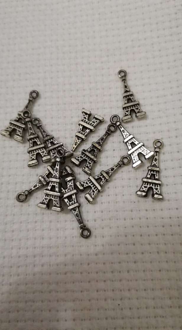Gri renkli, işlemeli detaylara sahip boncuklu Eyfel Kulesi kadın charm, bohem, hippie ve retro gotik tarzını yansıtır.