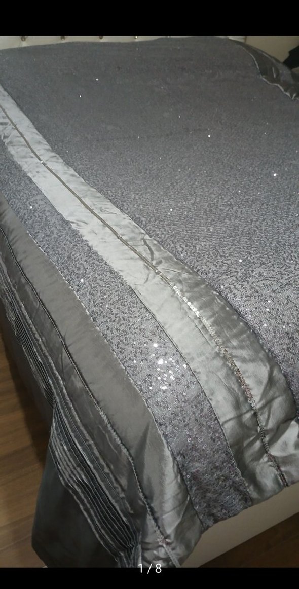 Gri parlak 2 yastık kılıfı yatak örtüsü