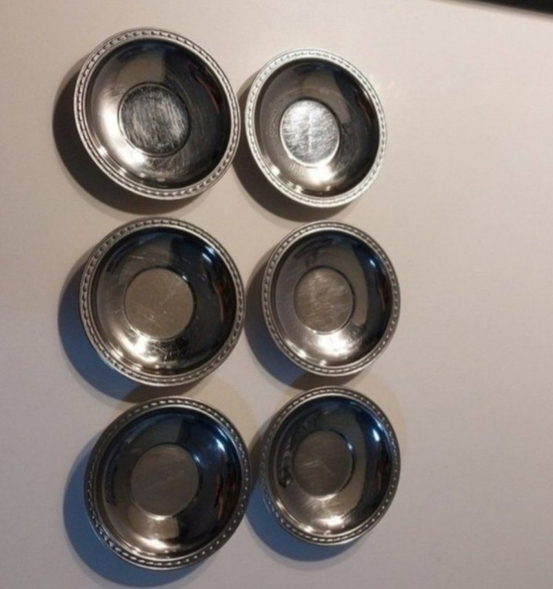 Parlak gri metalden yapılmış, sade ve desensiz kenar detaylı 6 parça tabak seti. ️