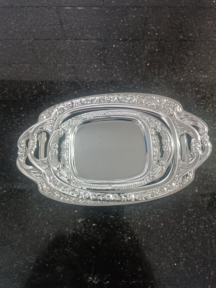 Gri Parlak Dekoratif Tepsi Seti minik sunumluk