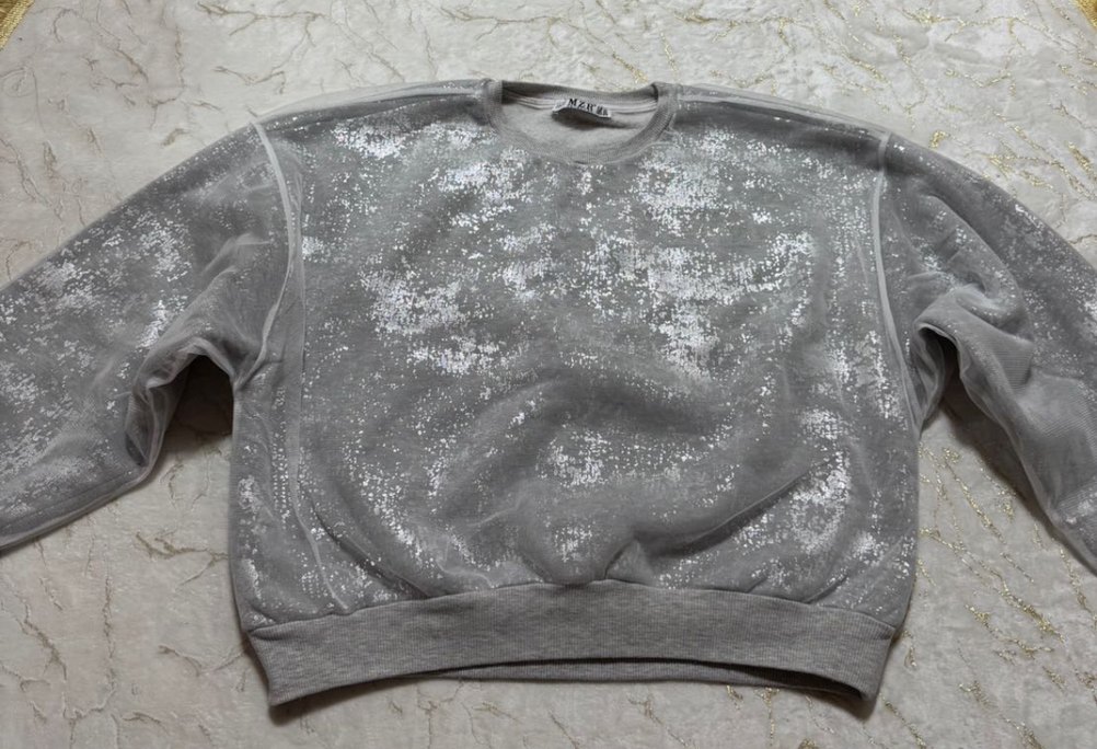 Gri renkte, uzun kollu ve yuvarlak yaka kadın sweatshirtü. Rahat kesimli ve parlak sim detaylarına sahip, sokak modasına uygun bir parça.