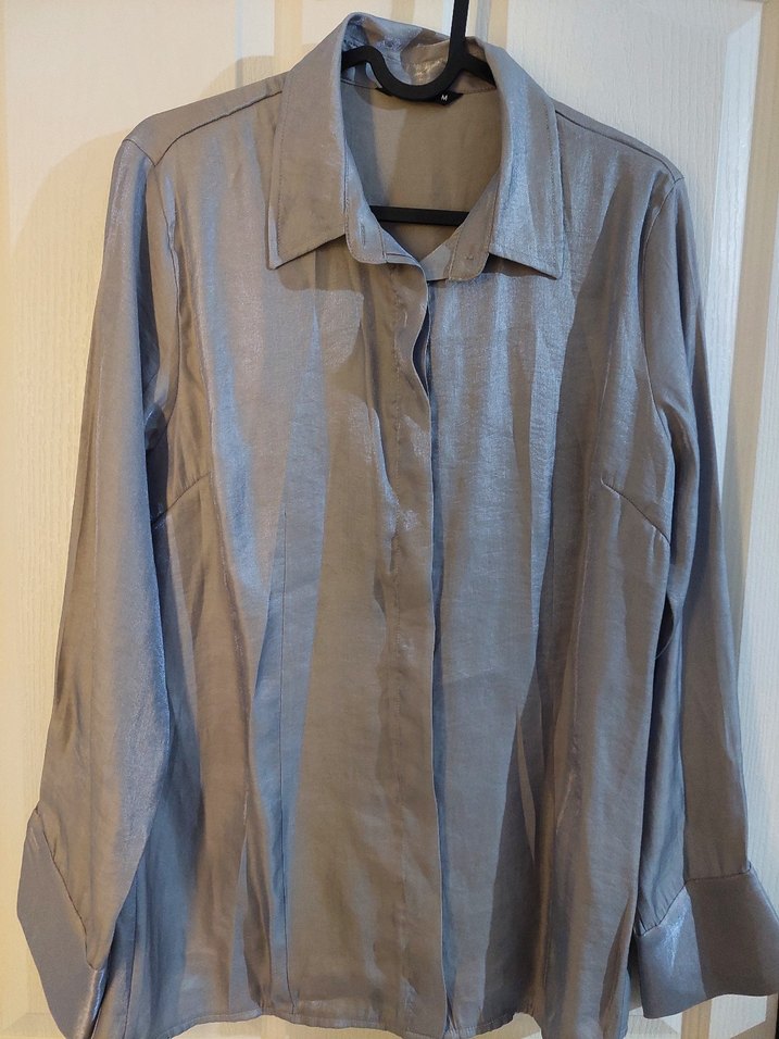 Gri Parlak Kadın Gömlek