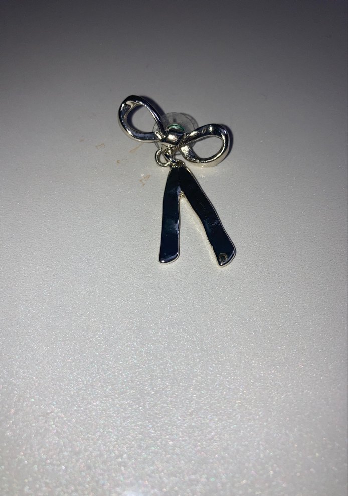 Romantik akşamlar için sade, minimalist tasarımlı, parlak gri kurdele şeklinde kadın küpe .