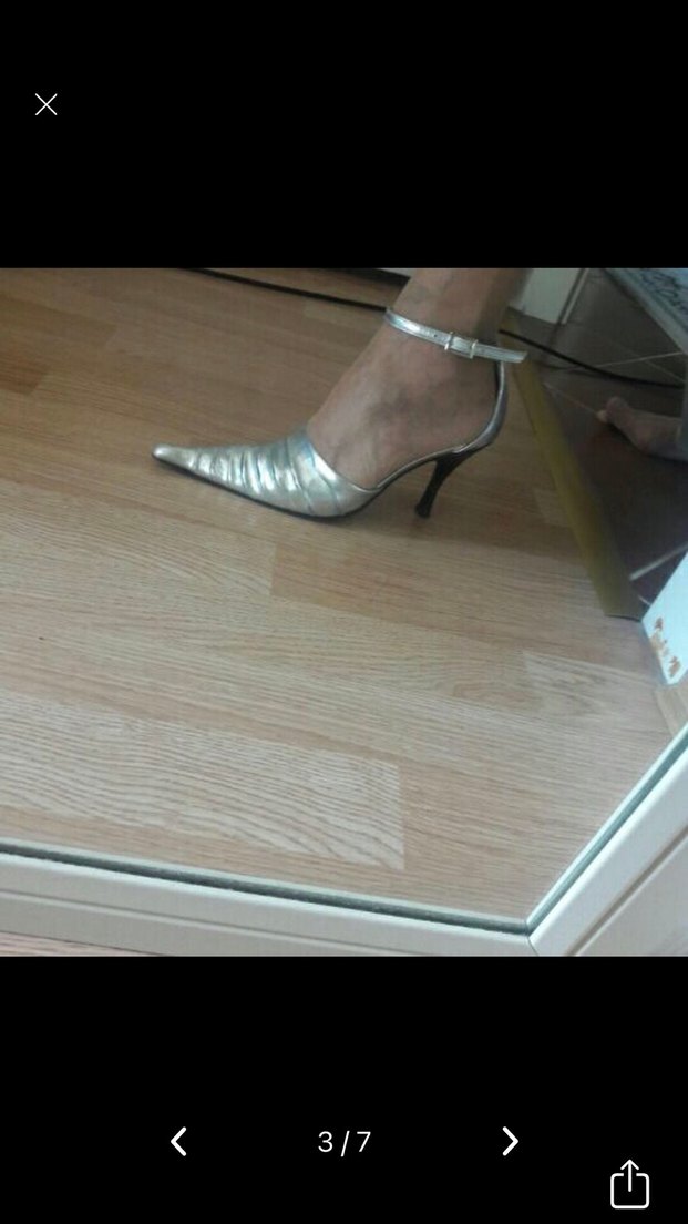Gri Parlak Metal Tokalı Stiletto Kadın Ayakkabı