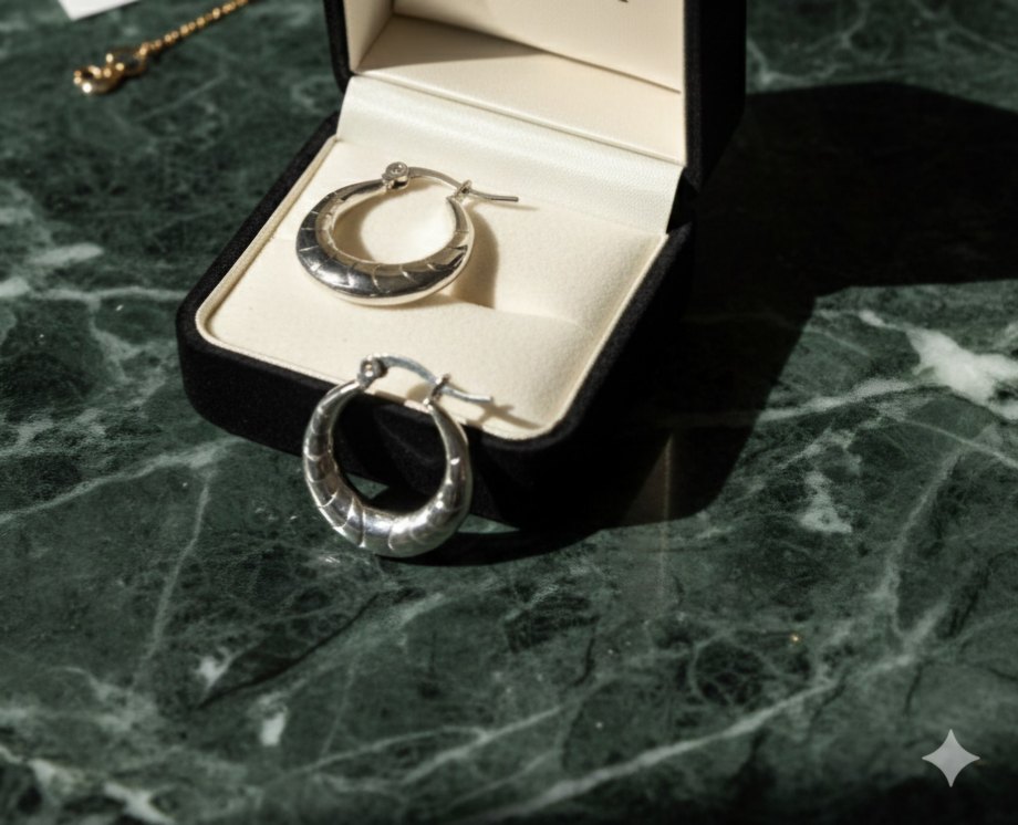 Parlak gri renkte, tokalı midi halka küpe. Günlük kullanıma uygun, çağdaş ve minimalist tasarımda.