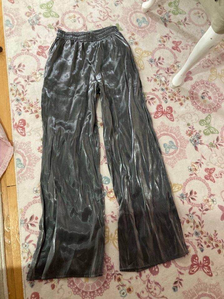 Gri Parlak Salaş Pantolon