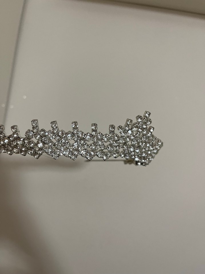 Gri ve beyaz renklerde, parlak taşlarla süslenmiş gelin tacı, klasik zarafeti çağdaş dokunuşlarla birleştirir. ✨ nişanım için çarşıdan biraz pahalıya almıştım zaten bir kaç saat kullanmış oldum