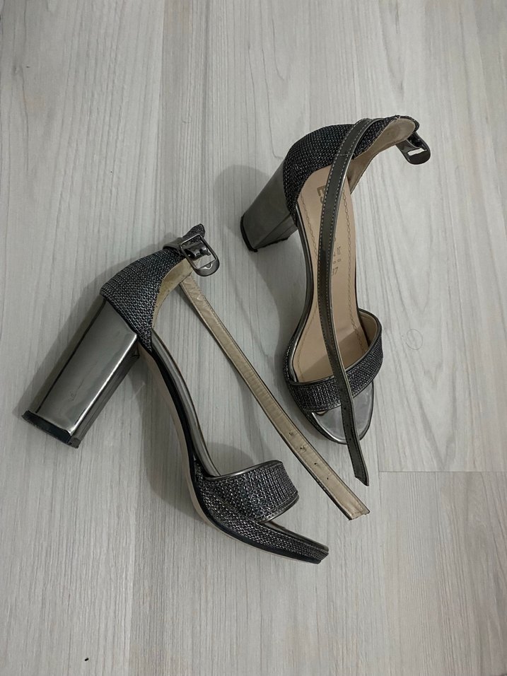 Ayakkabı sadece 1 defa kullanıldı. Durumu görseldeki gibi parlak gri küçük kusurları bulunabilir.Topuk boyu 9 cm