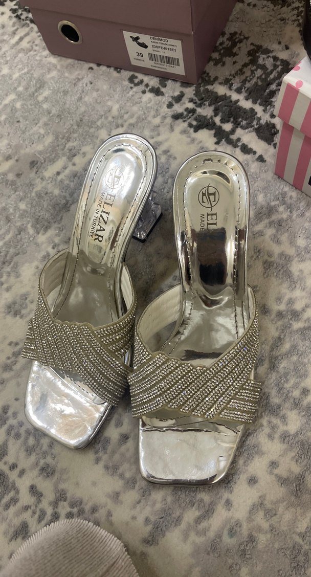 Gri Parlak Topuklu Kadın Abiye terlik ayakkabı