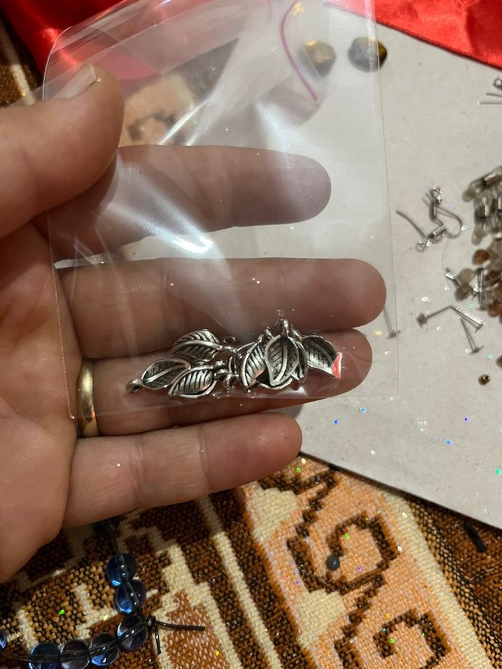 Parlak gri yaprak şeklinde küçük boy süsleri, hafif metalik bir dokunuş katmak için uygundur.