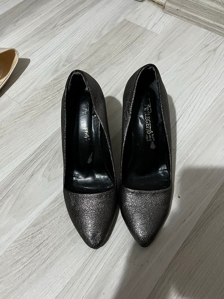 Gri Parlak Yüksek Topuklu Kadın Ayakkabı