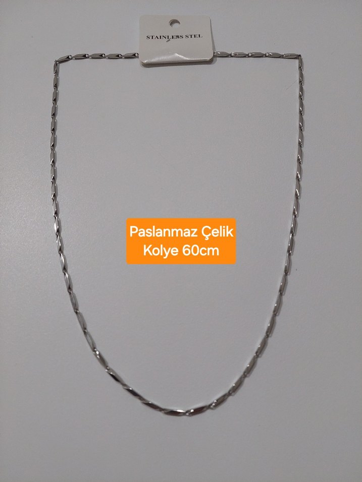Minimalist tarzda, 60 cm uzunluğunda paslanmaz çelikten yapılmış gri erkek kolye. Günlük kullanıma uygun sade ve modern tasarım.