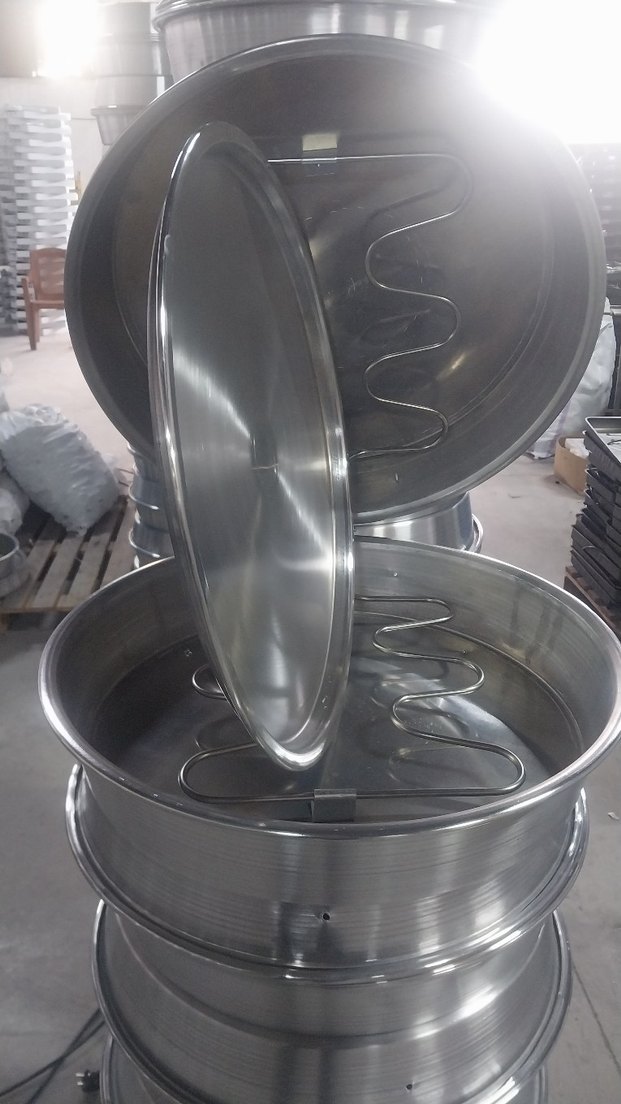 Gri paslanmaz çelik tencere, pürüzsüz kapak ve içinde yerleşik ısıtıcı bobin içerir. Dayanıklı ve çeşitli pişirme ihtiyaçlarına uygundur.