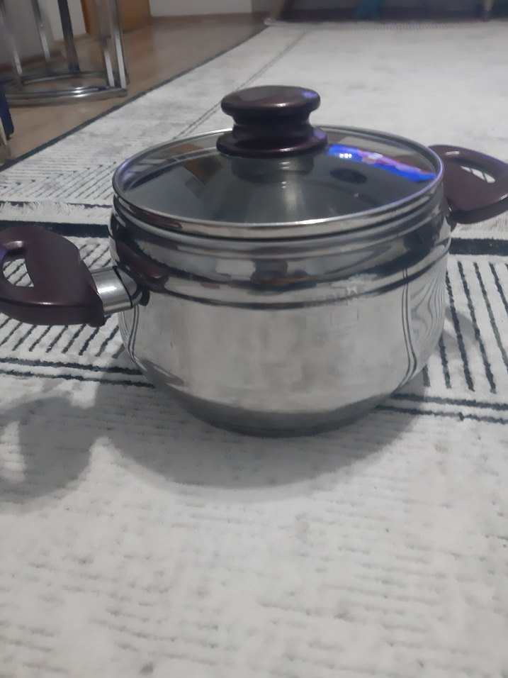 Gri paslanmaz çelikten yapılmış bu tencere, uyumlu kapağı ile birlikte gelir ve pürüzsüz, parlak bir yüzeye sahiptir. ürün cok az kullanıldı sadece iç tarafta küçük bir darbe var kullanımda sıkıntısı yok berlin düdüklü tencere küçük boy dur kapak varsa düdüklü olarak kullanıla bilir 3.5 kilo luk