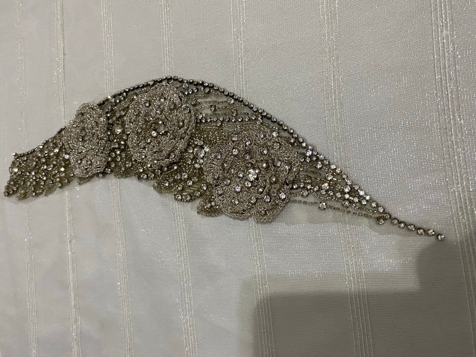 Sentetik kumaştan gri, payetli çiçek desenli bohem tarzda saç aksesuarı veya elbise süsü , göz alıcı bir görünüm sağlar. ✨
